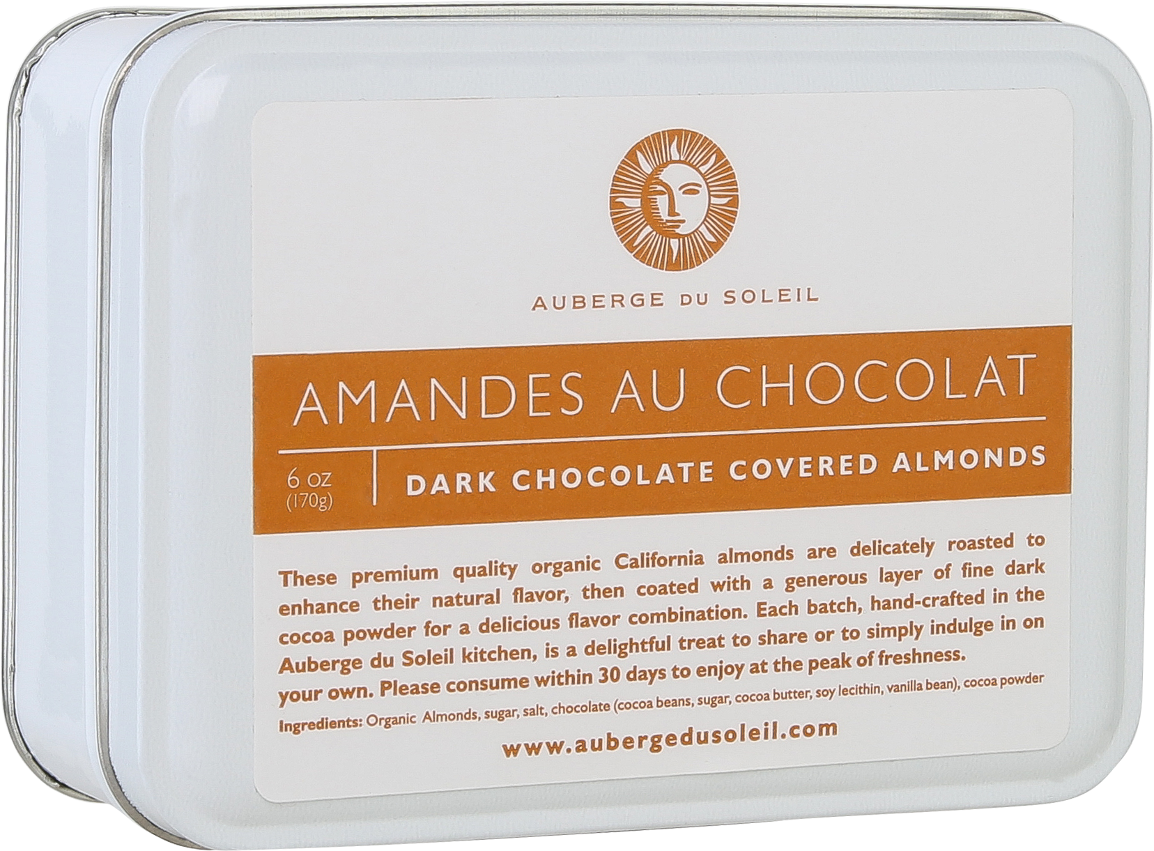 Delicately roasted whole, organic California almonds enveloped in a generous layer of dark chocolate. net wt. 6 oz (170g)